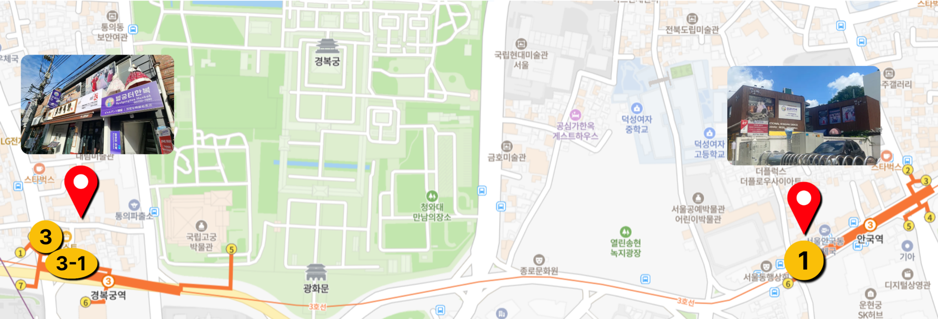 ■ 경복궁점: 3호선 경복궁역 3번 or 3-1번 출구 / 도보 2분